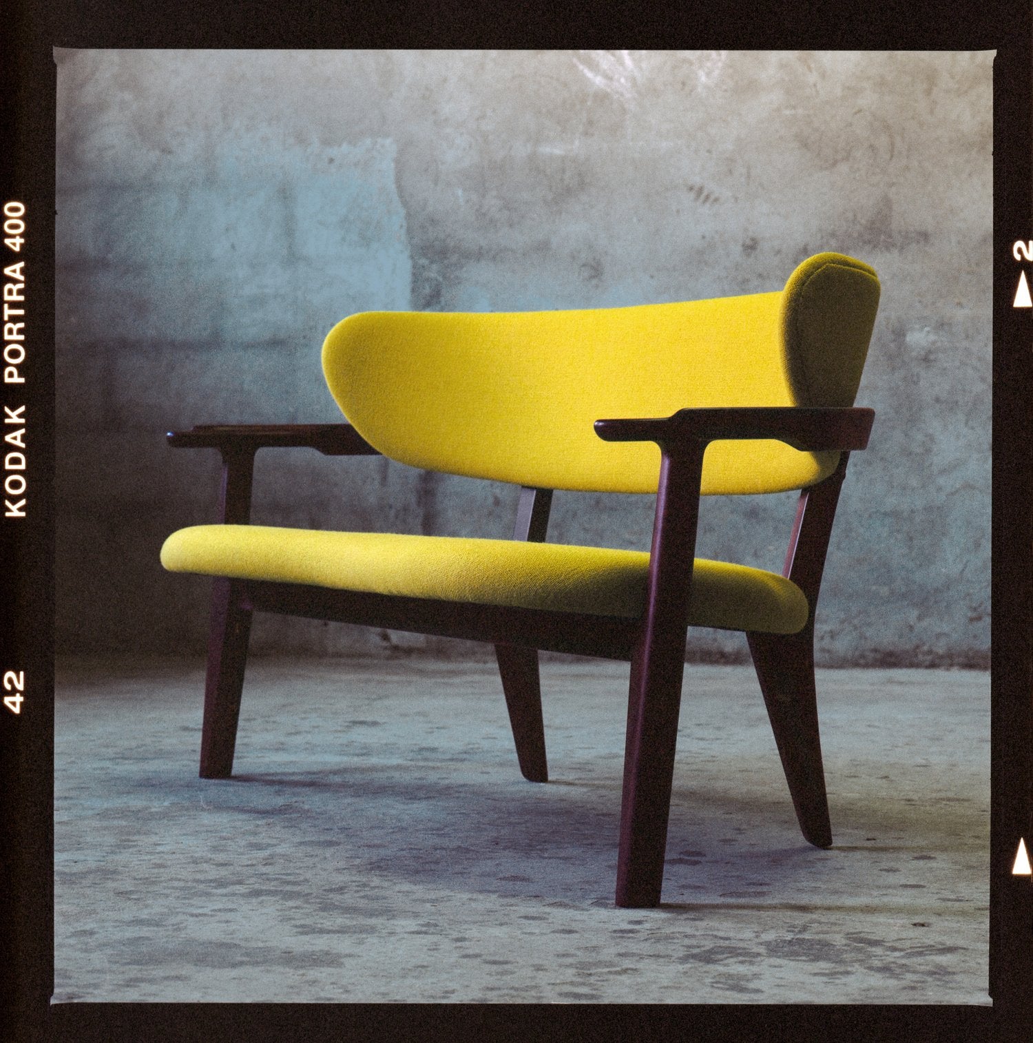 En topersoners sofa der er let i rummet, men samtidig omfavnende og indbyder til samtale mellem de siddende.
