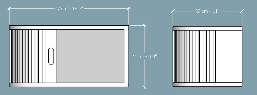 Bedside No. 129, a floating nightstand / bedside table in solid wood. With tambour door.