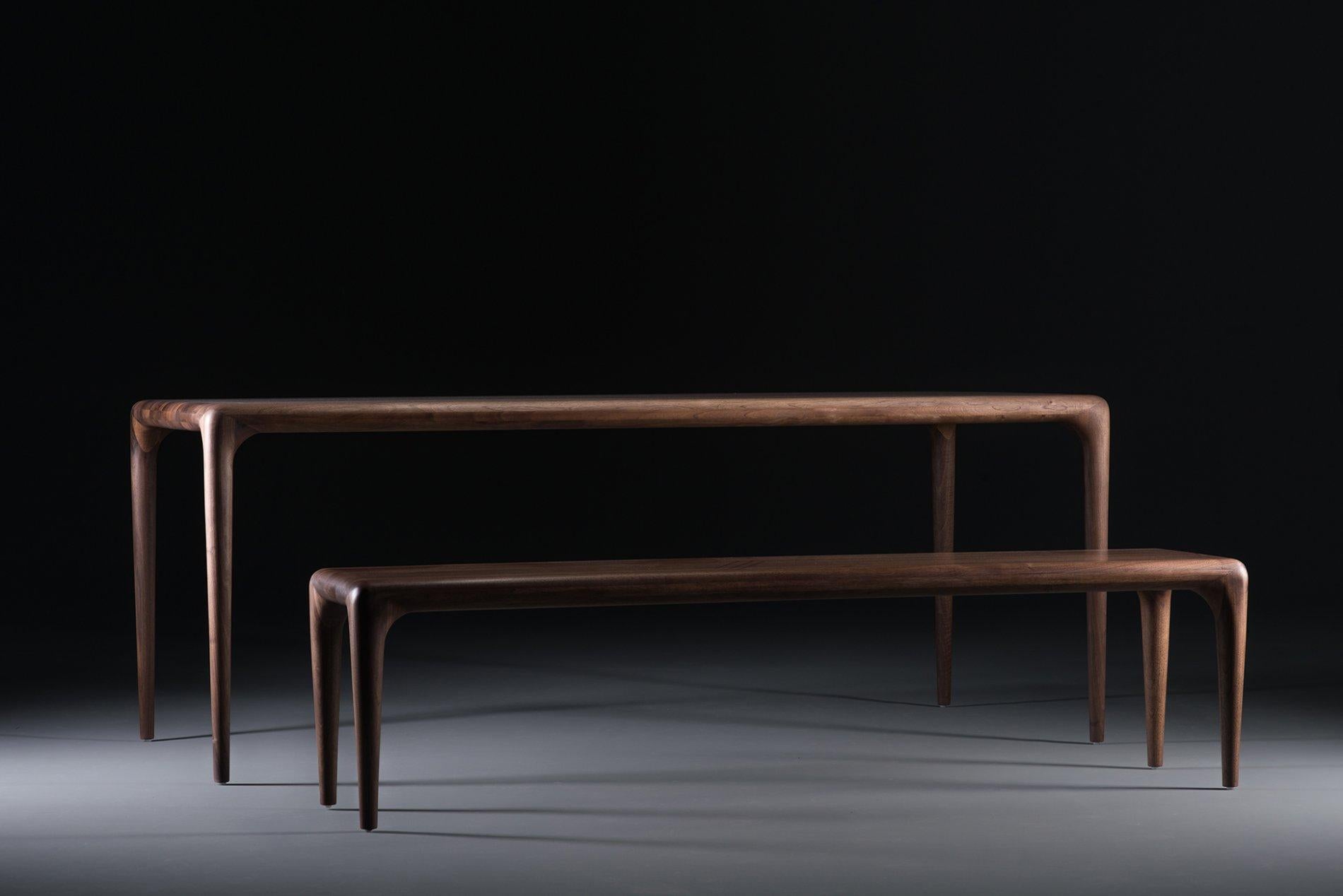 Det organise design kommer som bord eller bænk og laves på bestilling og efter ønske i forskellige træsorter