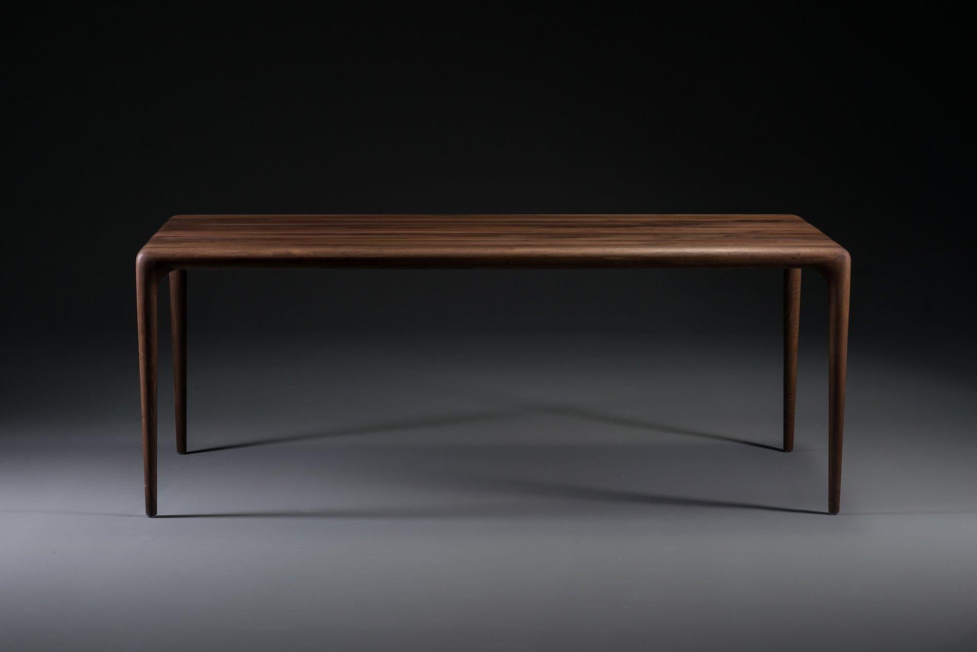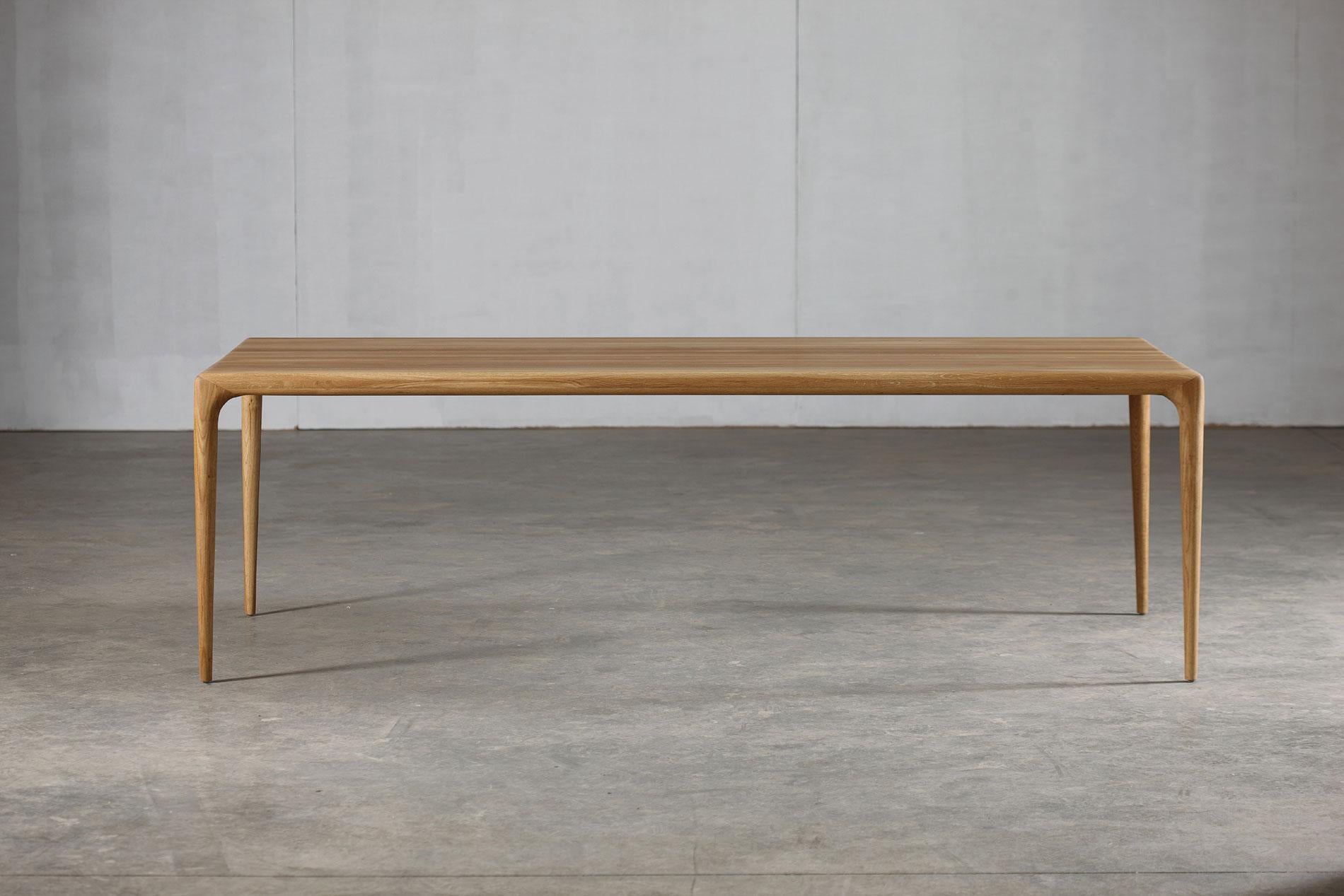 Bordet bliver oftes brugt til projekter, da vi kan få lavet de i specielle størrelser tilpasset lokationens behov, med de glidende overgange i samlingerne fra bordplade til bordben er der tale om en fantastisk visuel oplevelse såvel som et snedkerteknisk respekt for håndværket af konstruktionen i træ designs.