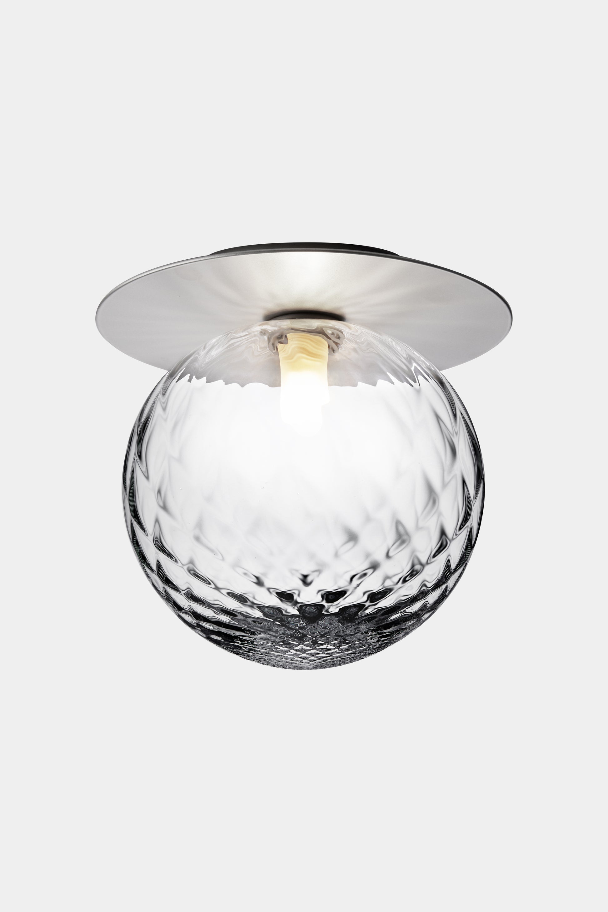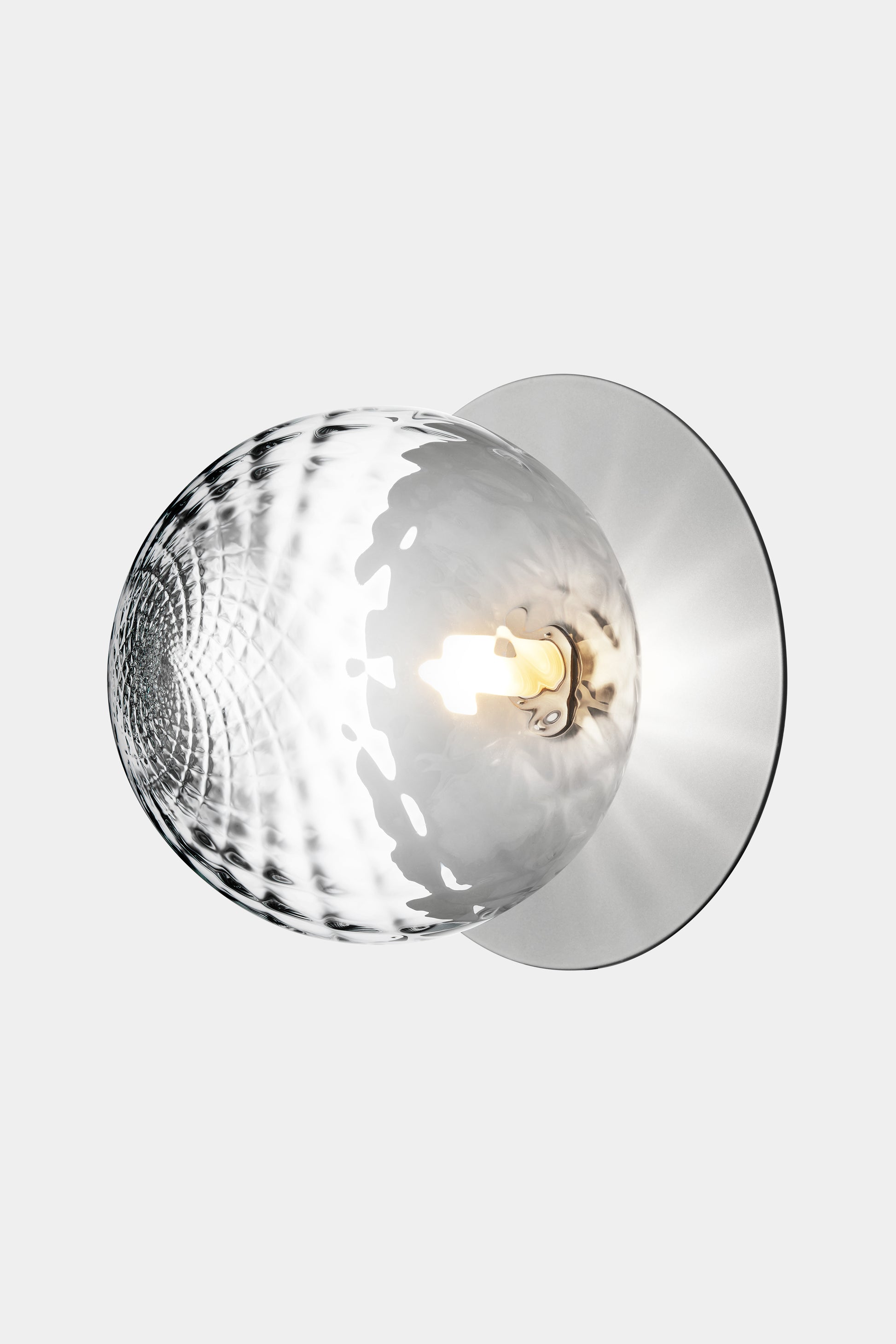 Liila 1 en enkelt lampe, som tager sig flot ud på væggen eller loftet. Den består af en tynd metalplade, som giver modspil til det mundblæste glas.