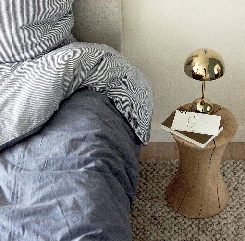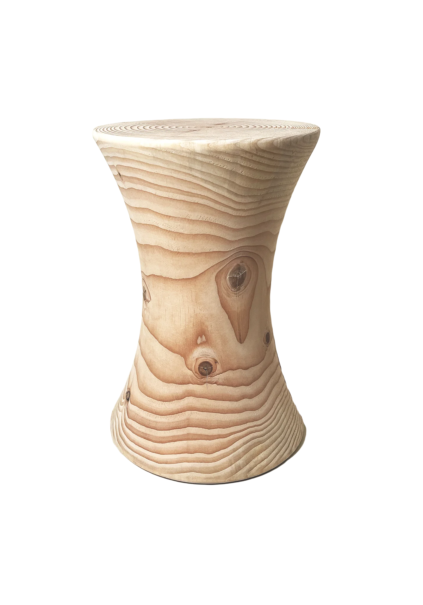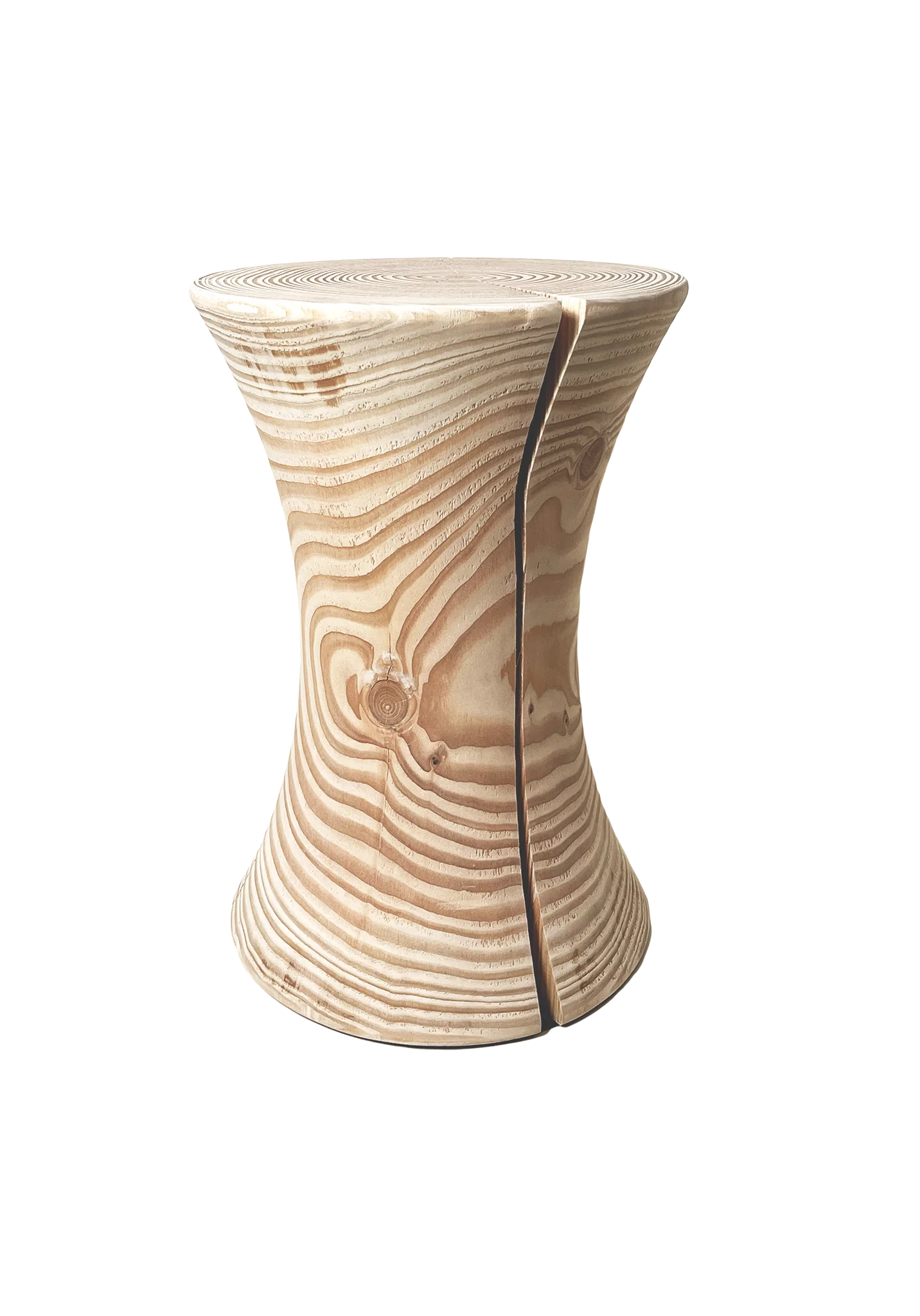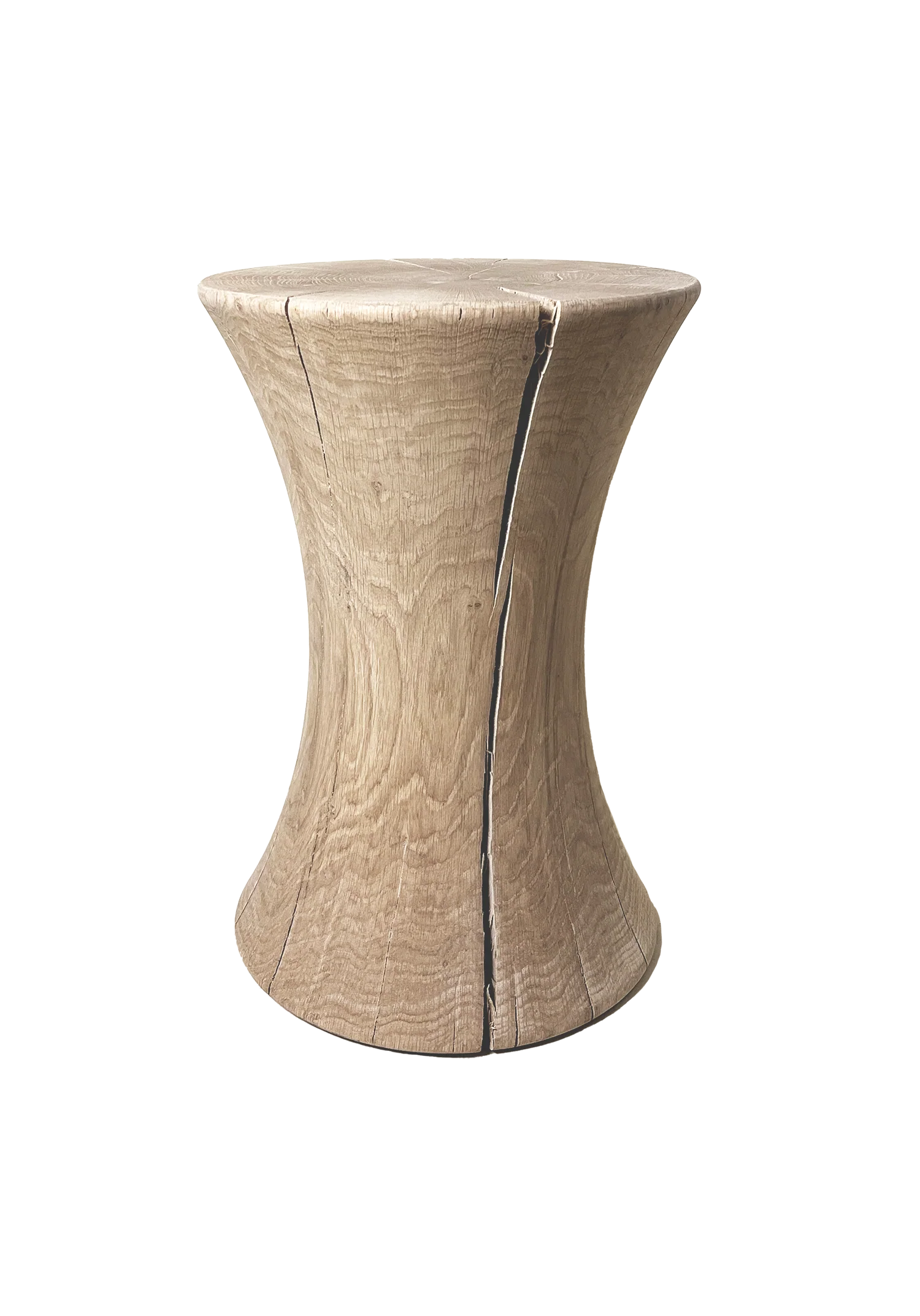 Designet fremhæver træet som et levende naturmateriale, gennem de karakteristiske sprækker, åretegninger og knaster, som giver hvert produkt et naturlig, taktilt og unikt udtryk.